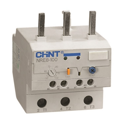 正泰NRE8系列電子式過載繼電器可與對應的NC1、NC7、NC8和NC2等交流接觸器接插安裝,符合標準:GB/T 14048.4、GB 14048.6、IEC 60947-4-1、UL508。