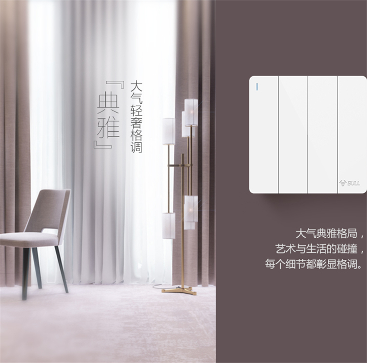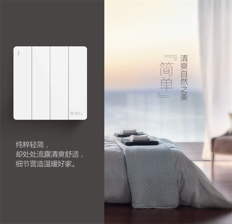 公牛四位雙控帶熒光標識開關G28K412B純粹輕簡,卻處處流露清爽舒適,細節營
