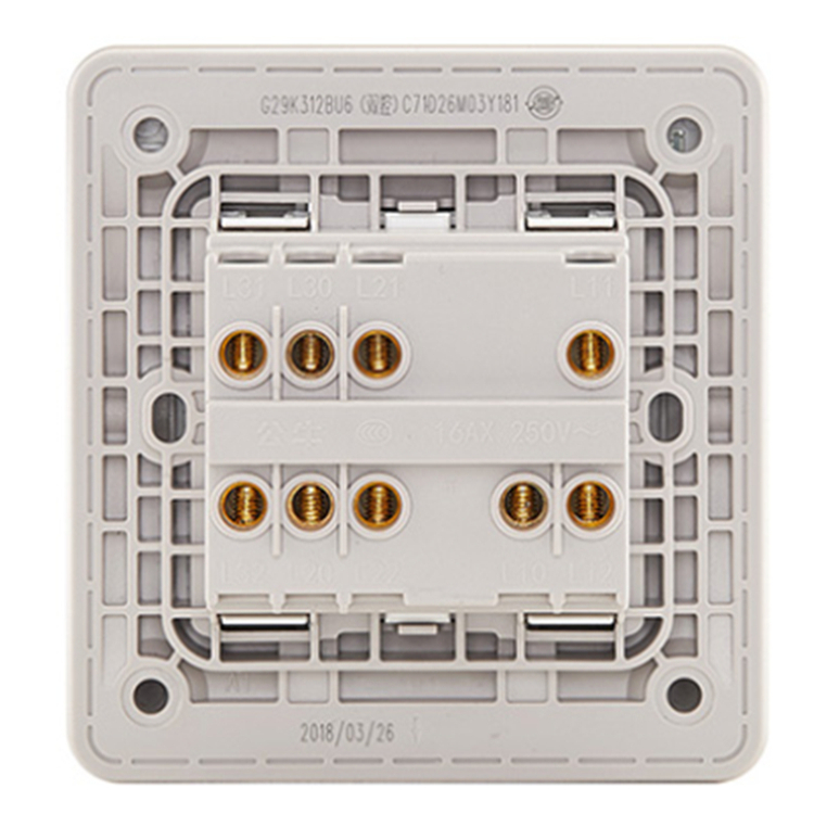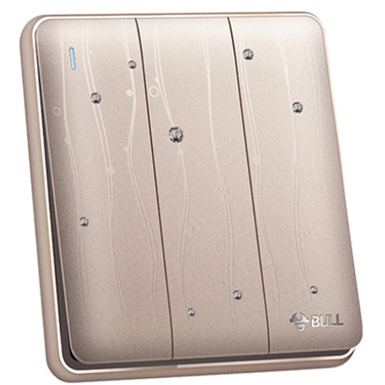 公牛三位雙控帶熒光水晶開關G29K312B采用冷貼工藝LOGO光滑立體,凹凸有致,