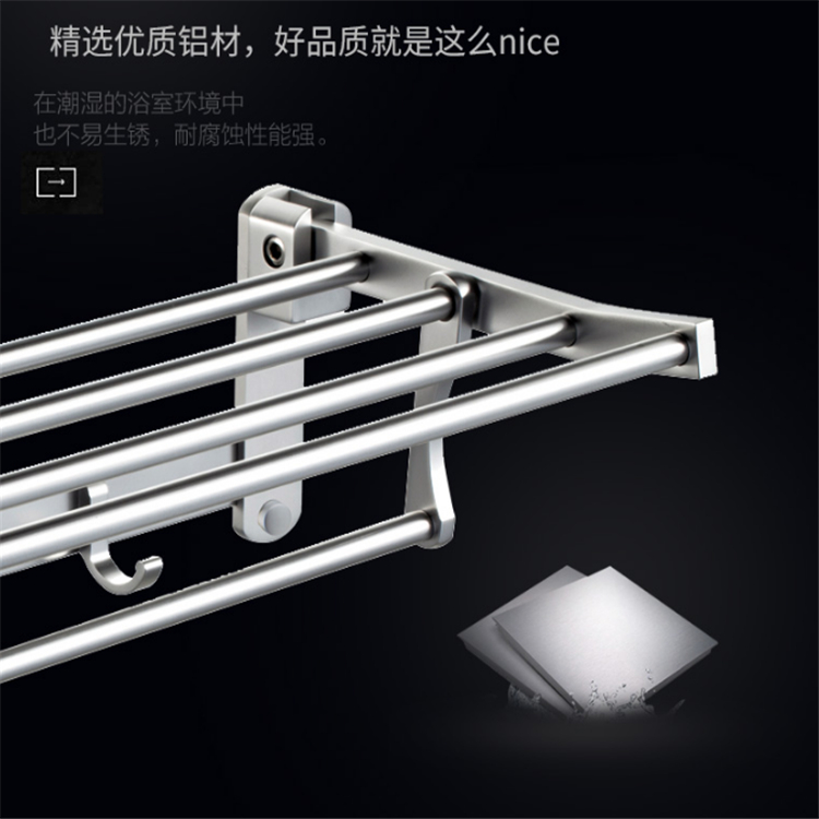 太空鋁可折疊活動浴巾架甄選優(yōu)質(zhì)鋁合金打造掛件,防水耐磨不易銹蝕,