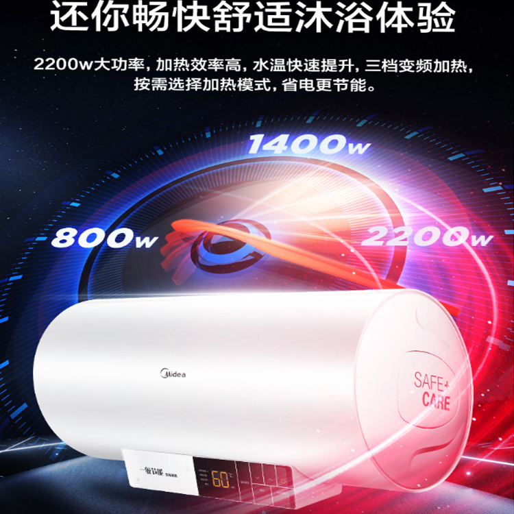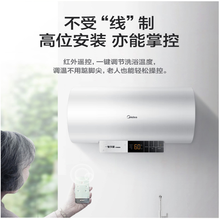美的(Midea)60升電熱水器2200W三檔寬壓變頻速熱遙控預約 健康抑菌漏電斷電