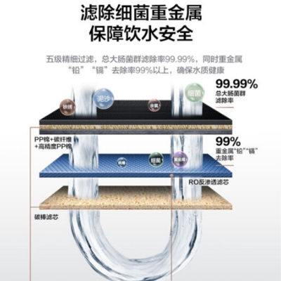 美的智能除菌凈水器五級精細過濾,濾除細菌重金屬。
