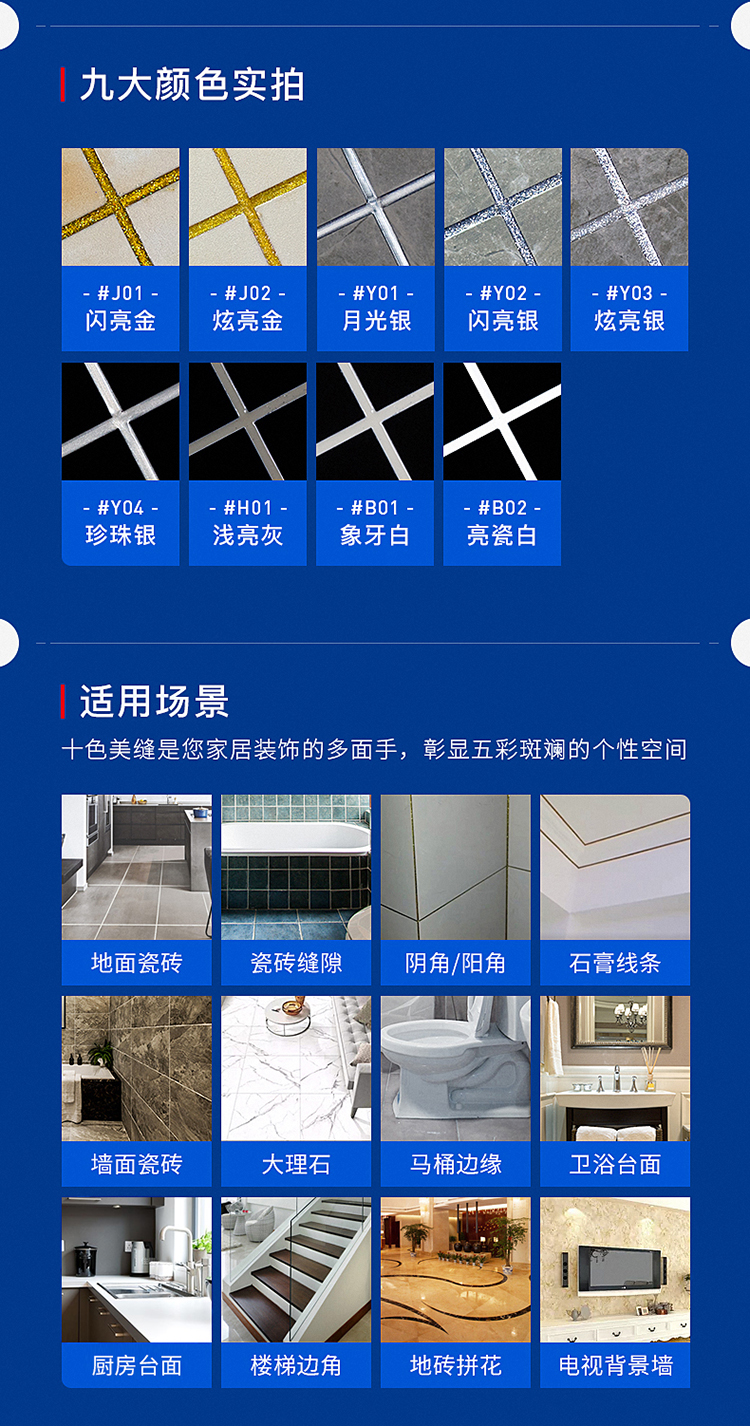 立邦美縫劑瓷磚地磚專用家用防水美縫勾縫填縫施工工具劑膠甄美縫:精選進口高密度環氧樹脂原料,擺平劃痕,污漬不易滲透。持久煥發光亮色彩。