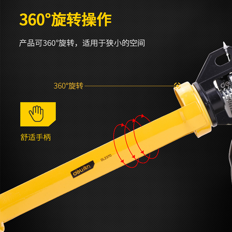 得力美縫密封膠槍玻璃膠手動(dòng)省力DL2350膠槍打膠槍,手柄采用人體工學(xué)設(shè)計(jì),手柄采用工程塑料包膠,防滑耐用,握感舒適,適合長時(shí)間操作。