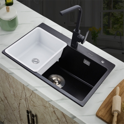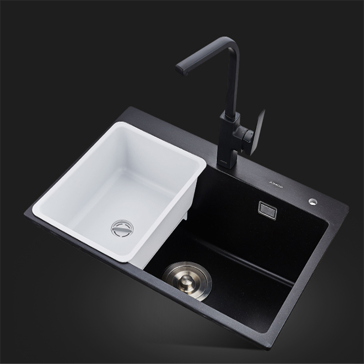 廚房優質石英石子母水槽單槽裸槽人性化大小雙槽設計,加大兩槽之間的尺寸差距,