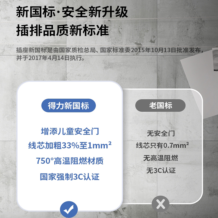 插座電源線導體橫截面積達到1mm2(10米線產(chǎn)品為1.5mm2)