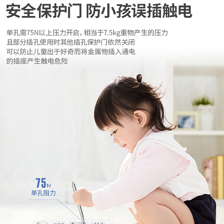 延長電源插座內(nèi)置安全保護門,有效降低兒童觸電風險;