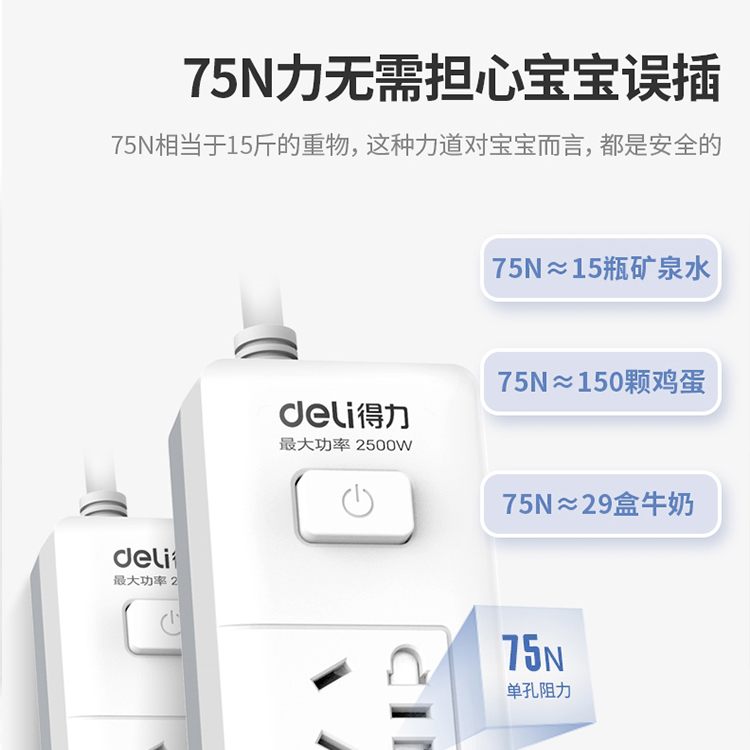 需要75N (15斤)以上的力氣才能打開,防止孩子意外接觸到導電內(nèi)芯