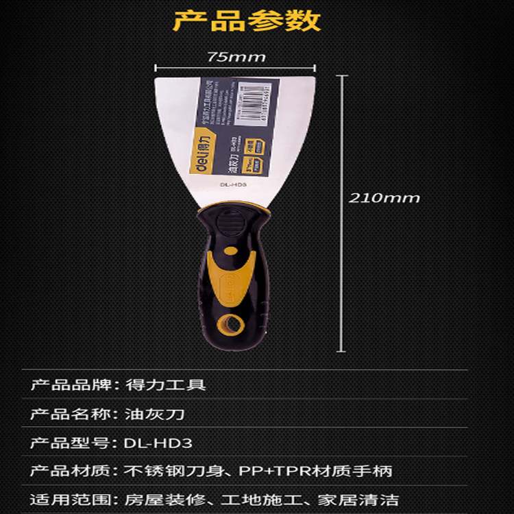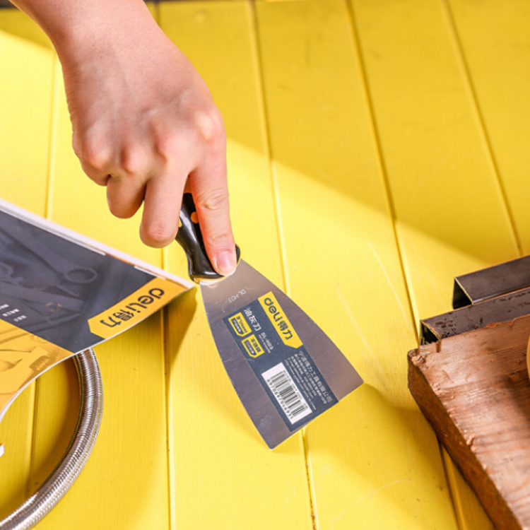 得力(deli) 不銹鋼油灰刀手柄采用PP+TPR材質制作,手感舒適,防滑耐刮