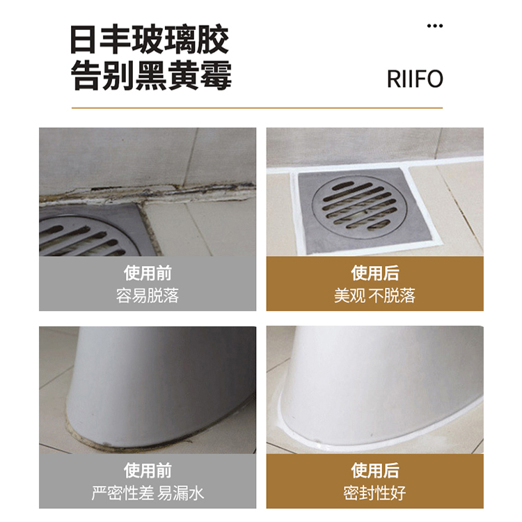 日豐玻璃膠防水防霉廚衛耐高溫瓷白色強力透明硅膠水馬桶密封邊,