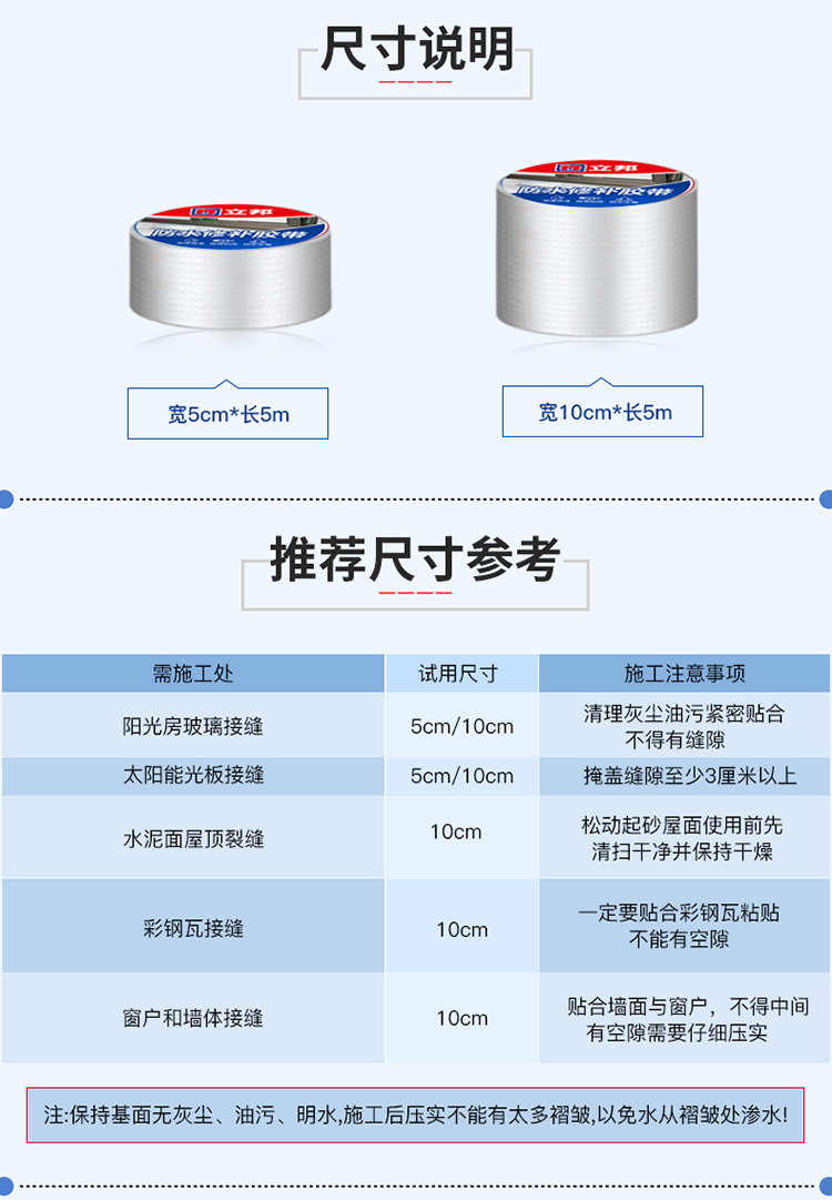 立邦防水膠帶強力裂縫外墻透明防水涂料屋頂防水補漏丁基卷材堵漏 尺寸說明
