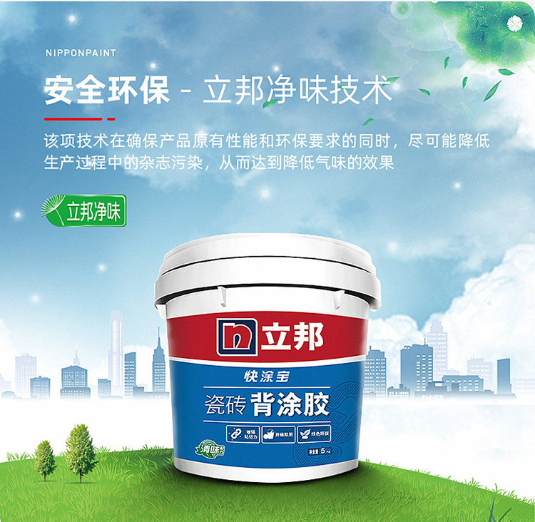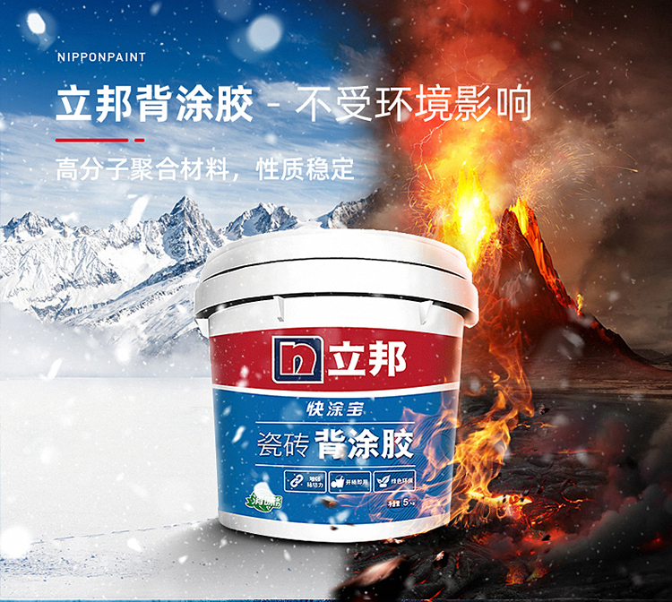 立邦強力瓷磚背涂膠:耐候性好,優(yōu)異的耐熱、耐凍性。高分子聚合物,性能穩(wěn)定,不易受環(huán)境影響。