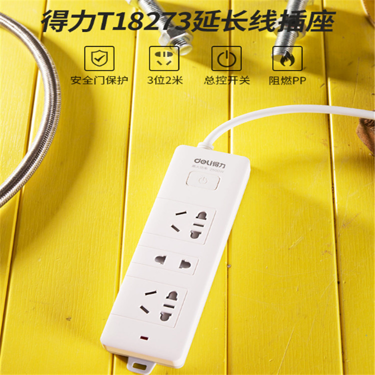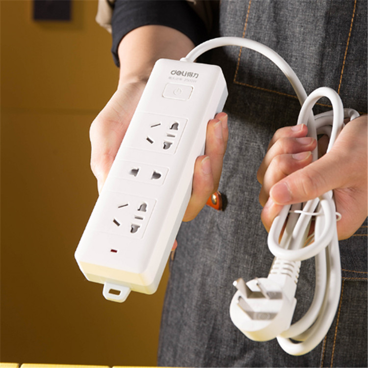 得力延長線插座耐高溫:插座殼體、內芯采用耐高溫材料,耐750°高溫。