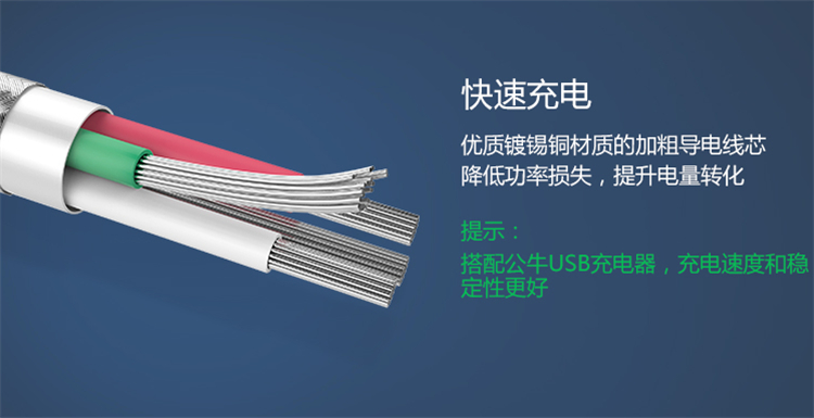 公牛抗折斷數據線優質鍍錫銅材質的加粗導電線芯,降低功率損失,提升電量轉化。