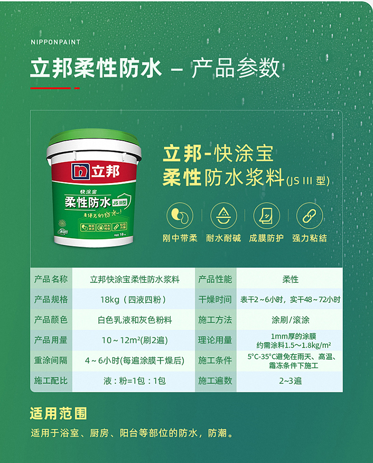 立邦快涂寶柔性防水涂料:剛中帶柔,柔韌升級