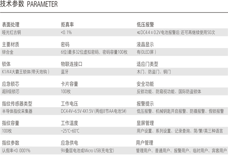 家用防盜門指紋鎖具有反鎖功能、防窺視功能、防盜鎖體。