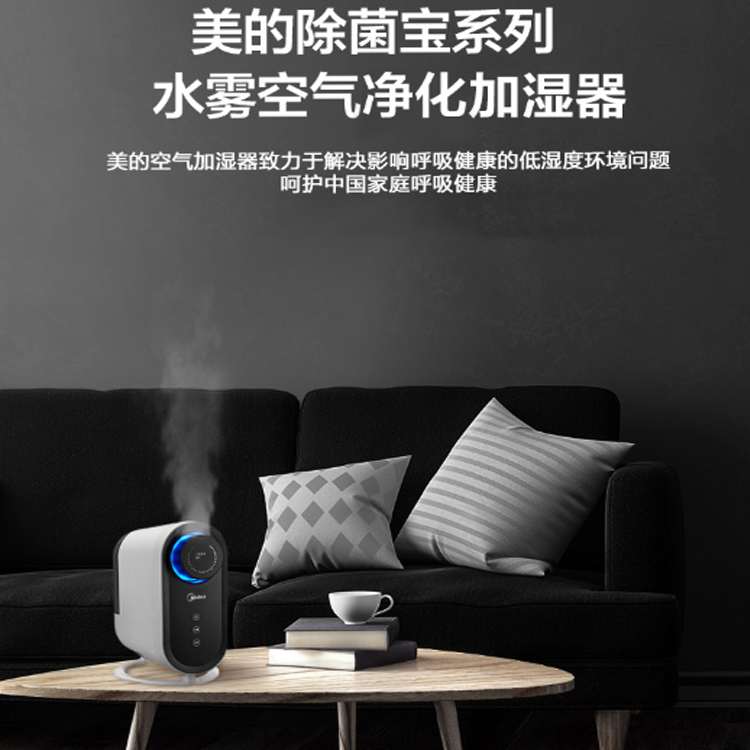 美的空氣加濕器高效殺菌凈化空氣,釋放清新健康水霧。