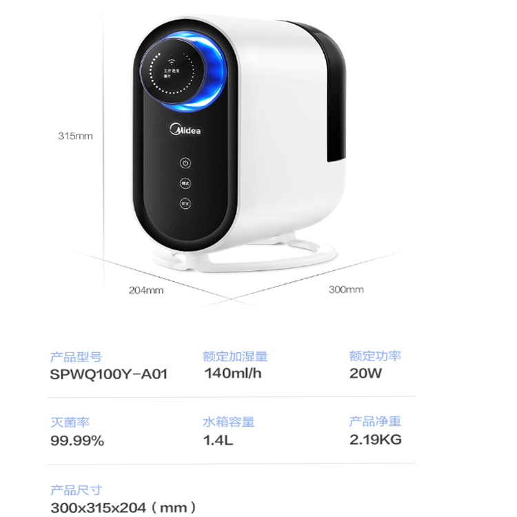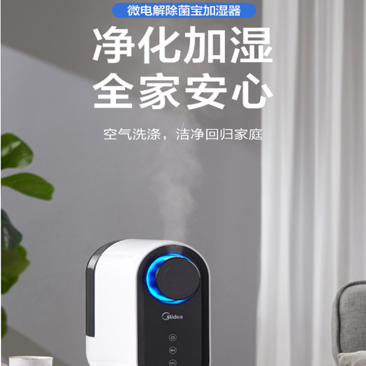 美的空氣加濕器微電解殺菌,空氣洗滌,全家安心。