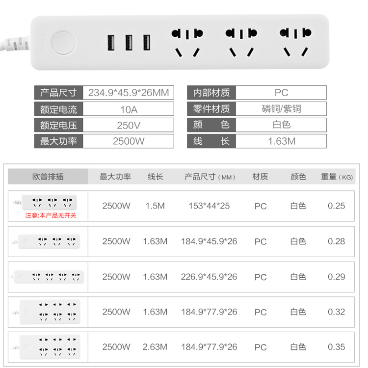 - 型號名稱智能快充[6位】含3USB1.8米
