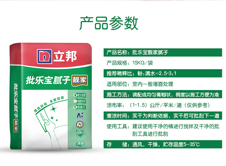 立邦 批樂寶靚家膩子20KG15KG 參數展示圖