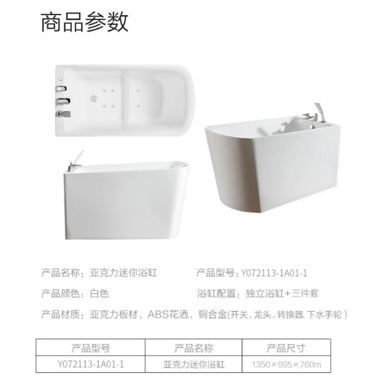 亞克力迷你浴缸迷你獨立式浴缸結構,不過分占用浴室空間,