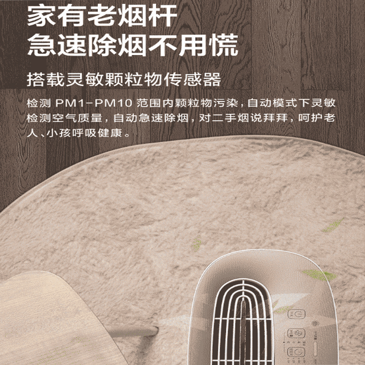 美的空氣凈化器搭載靈敏顆粒物傳感器,對二手煙說拜拜。