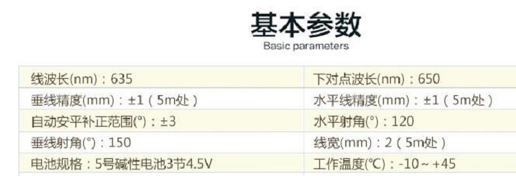 東成FF-41B激光投線儀東成二級激光產品基本參數
