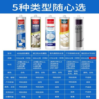 三和玻璃膠密封膠防水中性耐候硅酮膠防霉性強力免釘膠廚衛結構膠為單組分、中性室溫固化的硅酮密封膠;產品專門針對門窗填縫密封功能開發,使用特種配方助劑;具有良好的密封性能。