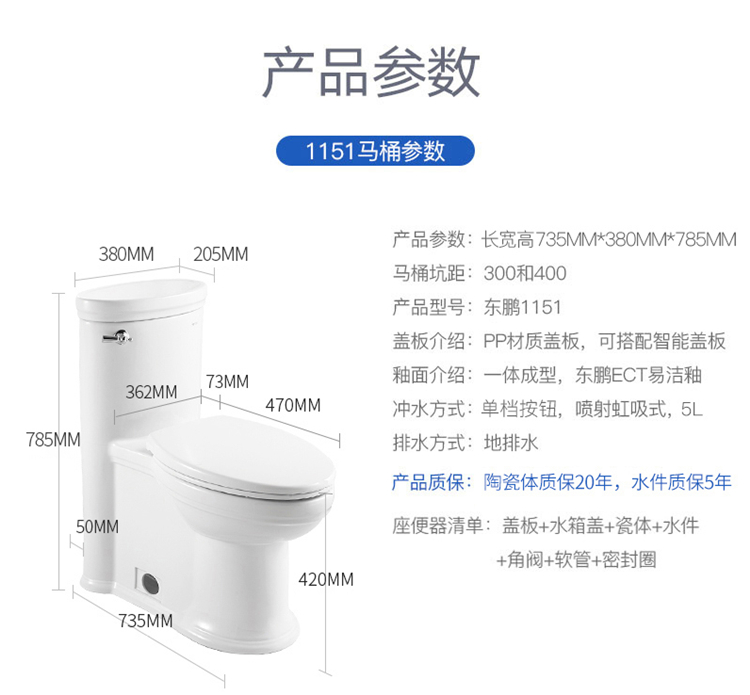 水虹吸式馬桶坐便器套裝3600環(huán)繞布水孔噴射沖水,排污順暢
