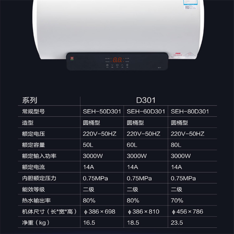 櫻花SEH-80D301速控系列電熱水器儲水式速熱電熱水器產(chǎn)品參數(shù)