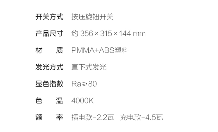 - 型號名稱旋鈕調光款插電版(配USB充電線+插頭)