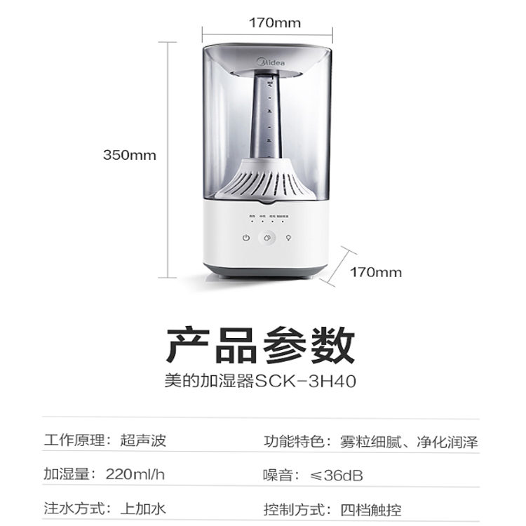 美的(Midea)加濕器安靜加濕,無打擾不擾眠。