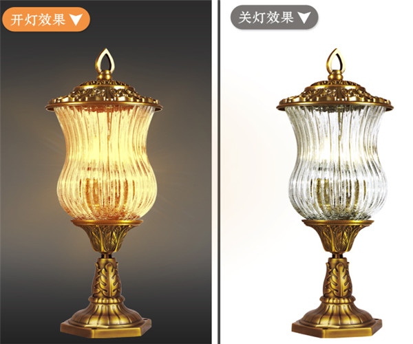 帝之苑銅燈 DH-6073-CU戶外照明燈開燈、關燈展示圖