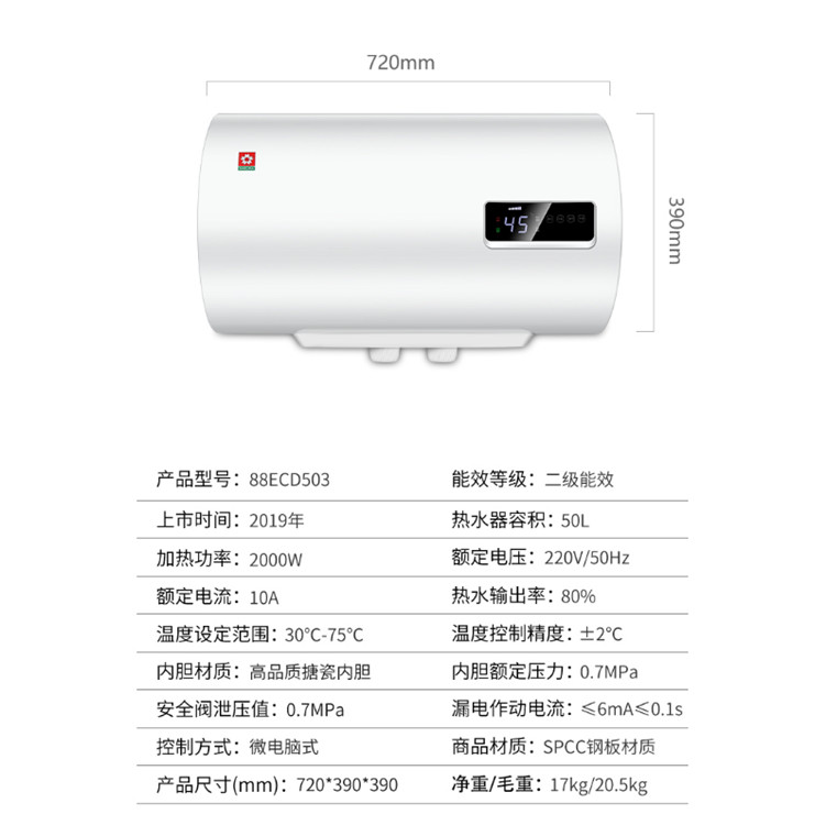櫻花88ECD503速控系列電熱水器儲水式速熱電熱水器性能規(guī)格