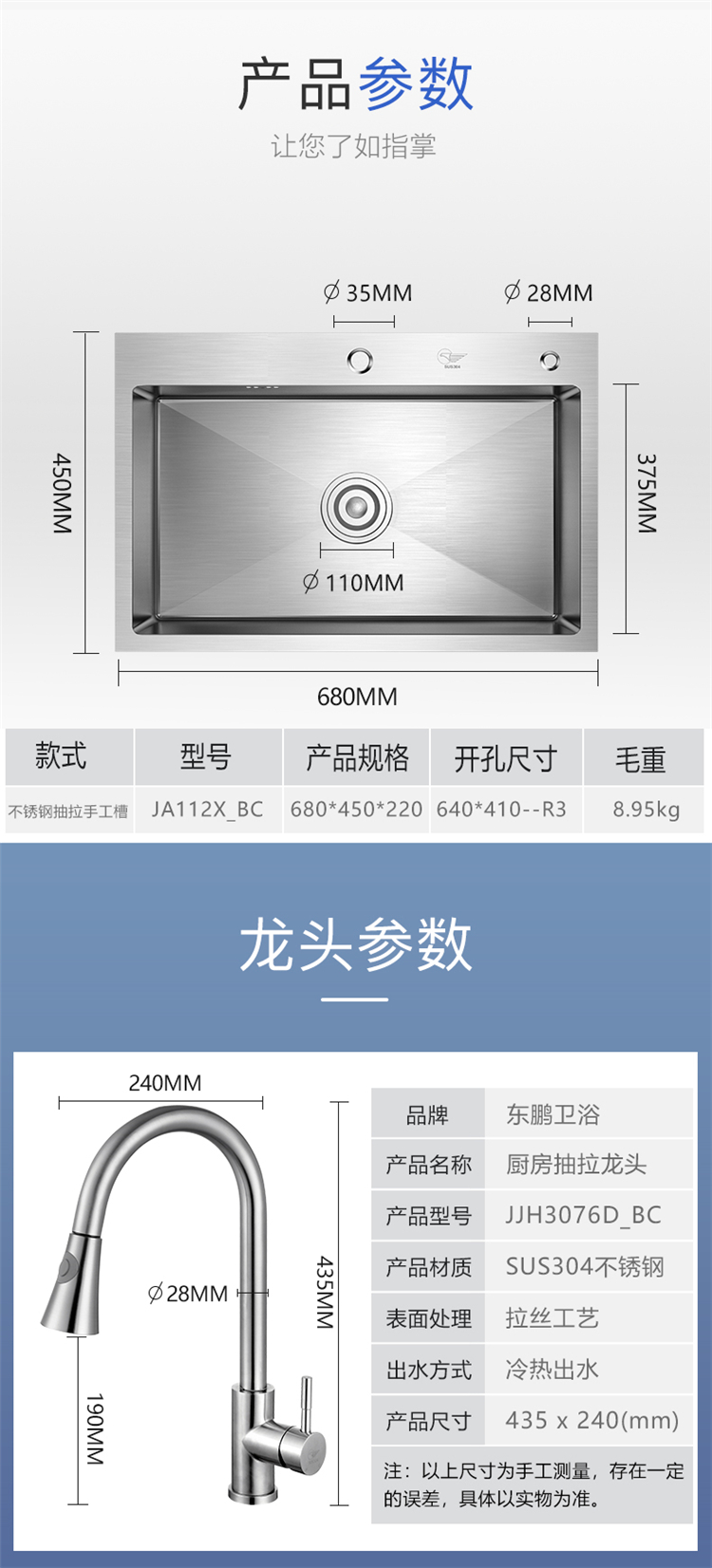 東鵬衛浴(DONGPENG)洗菜盆大單槽304不銹鋼