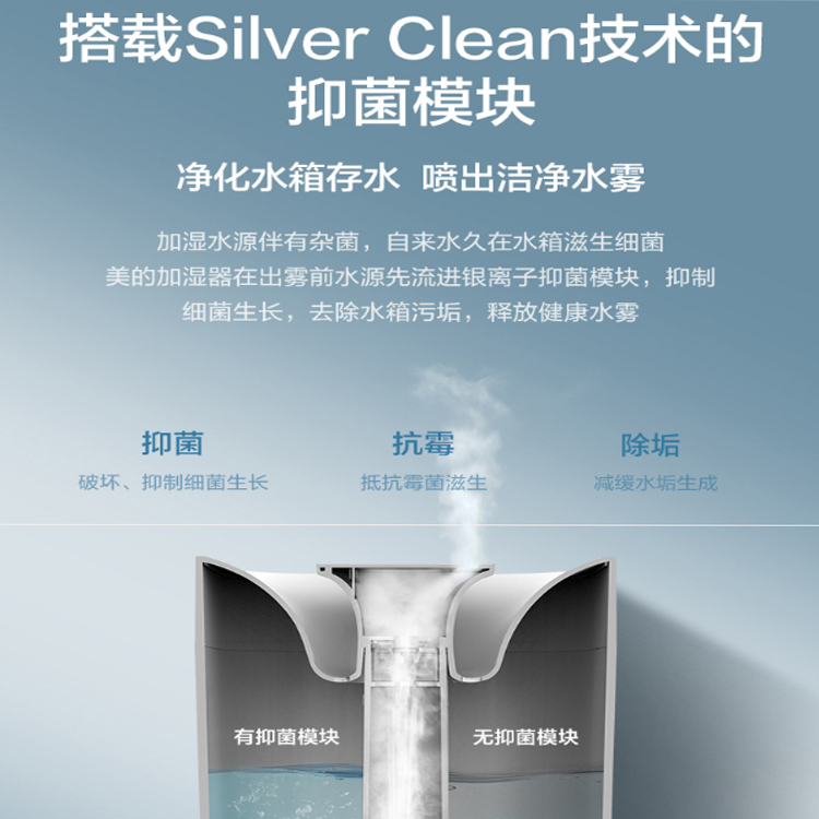 美的(Midea)空氣加濕器凈菌銀離子技術,潔凈水霧守護健康。