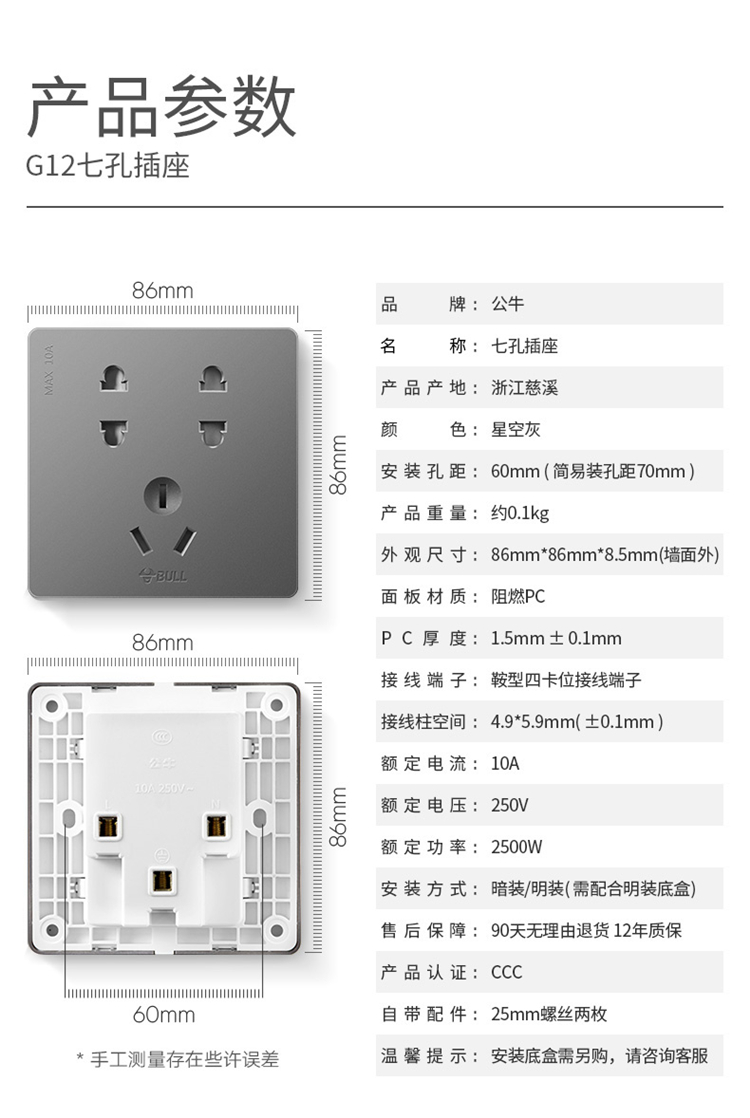 - 型號名稱86型多用五孔插座七?孔插座