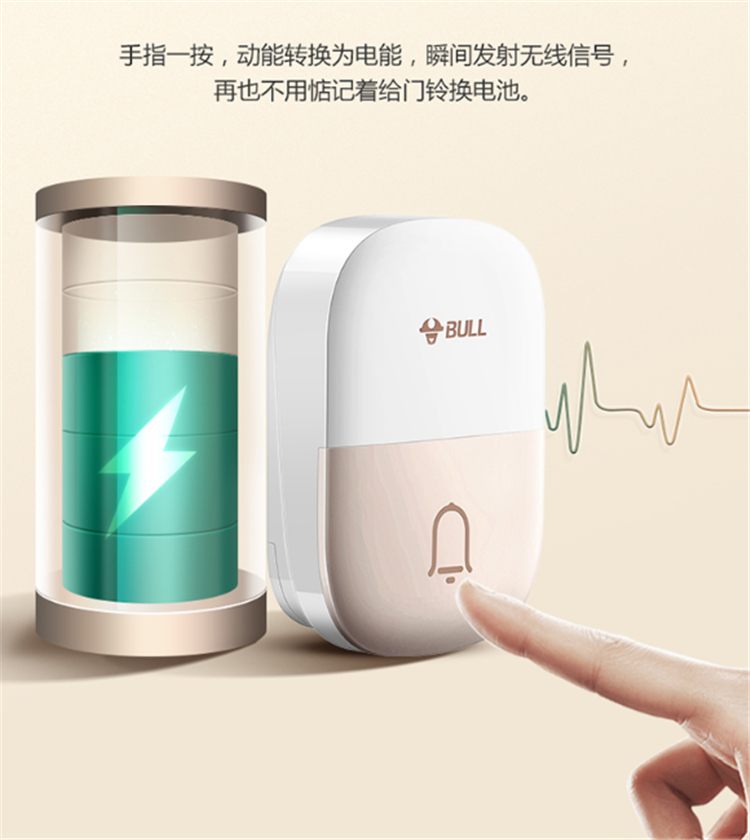 無源無線門鈴開關(guān)手指一按,動能轉(zhuǎn)換為電能,瞬間發(fā)射無線信號,