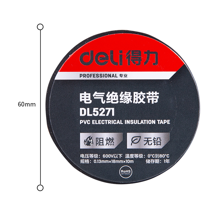 得力電氣絕緣膠帶DL5271電工電線膠布PVC防潮耐高溫