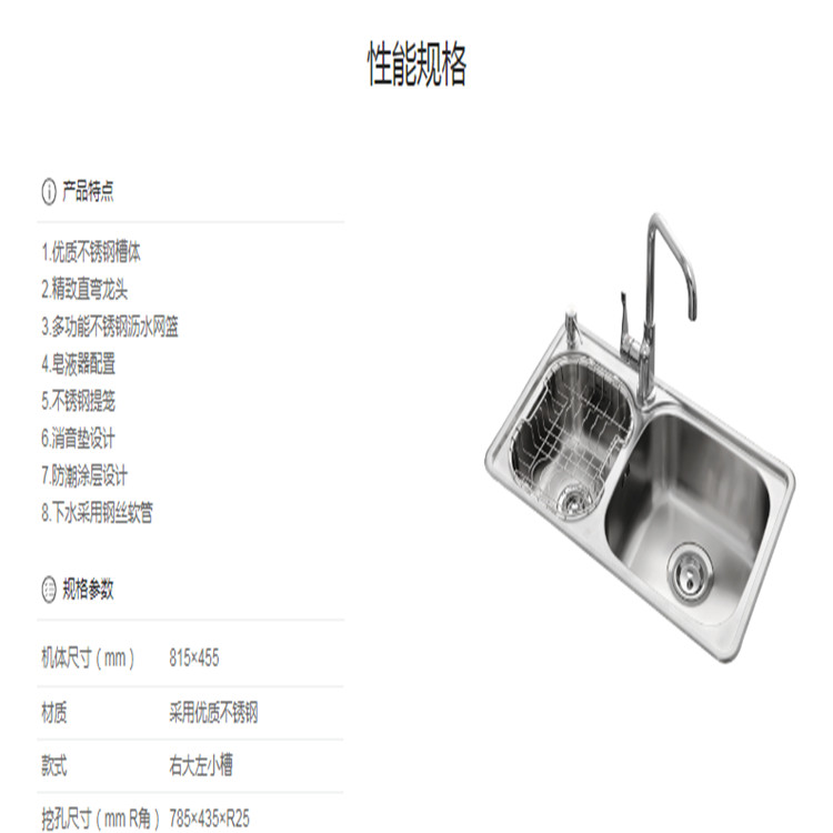 櫻花ST-3325N櫻花ST-3217水槽廚房S304不銹鋼水槽洗菜盆單槽帶支撐架子大小洗碗臺盆手盆池性能規格