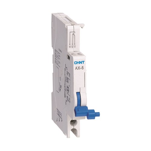 正泰AX-5 輔助觸頭適用于交流50Hz,約定發熱電流至6A,額定電壓至415V或直流額定電壓至130V的線路中,其與NL1剩余電流動作斷路器拼裝,作遠距離斷路器通斷的信號指示之用。符合標準:GB/T 14048.5、IEC 60947-5-1,獲得CE認證。