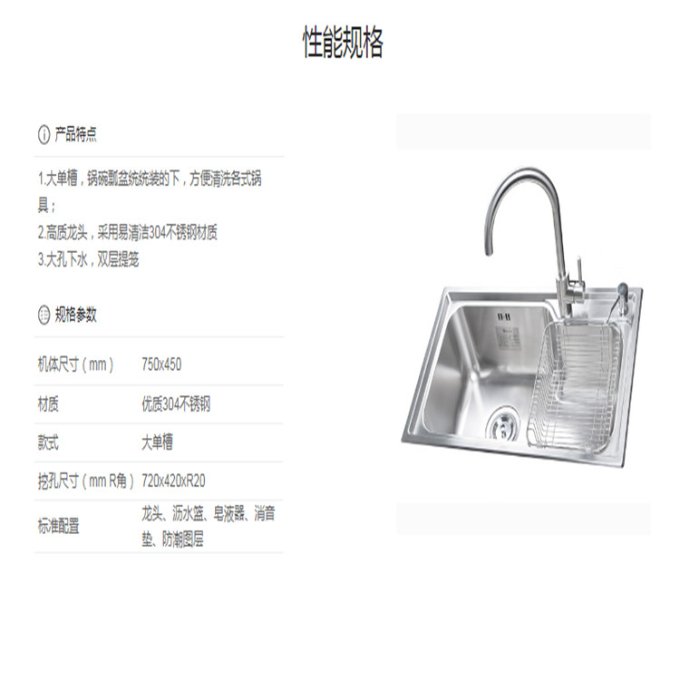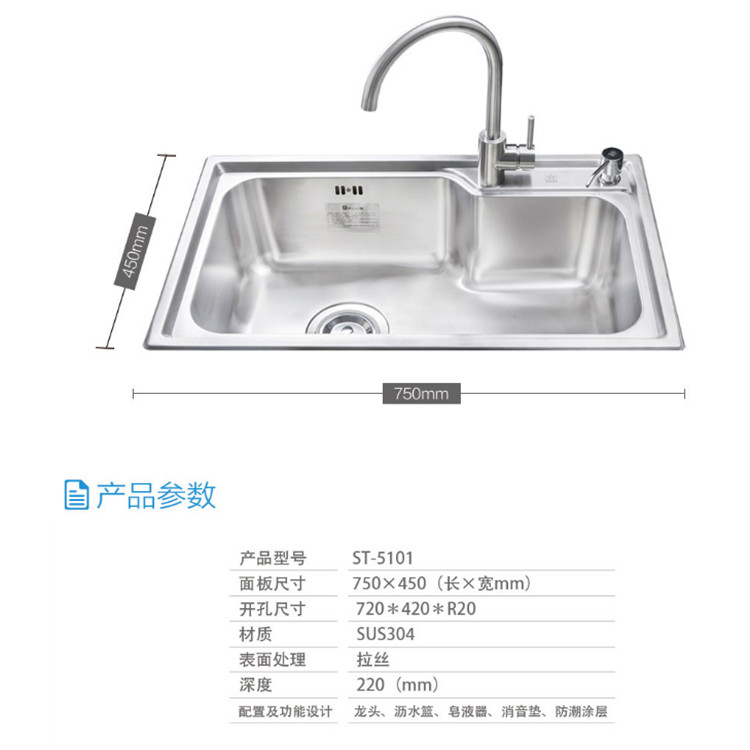 櫻花ST-5101水槽廚房S304不銹鋼水槽洗菜盆單槽帶支撐架子大小洗碗臺盆手盆池產品參數