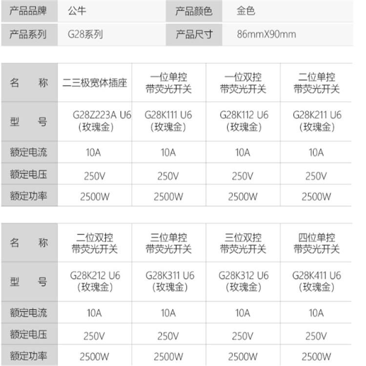 公牛(BULL) 開關(guān)插座 G28系列 一位電腦插座 86型面板G28T102 U6 玫瑰金 暗裝