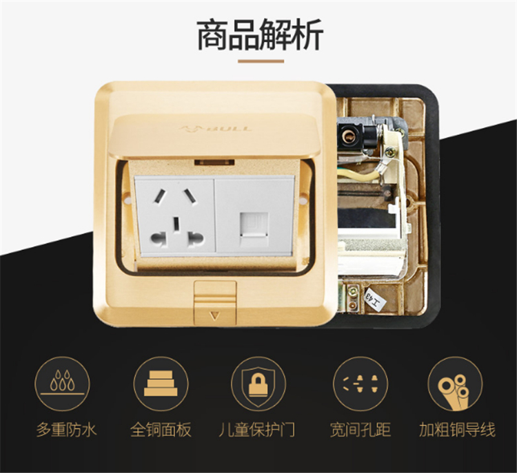 公牛(BULL)公牛地插座 全銅防水 電腦網絡五孔