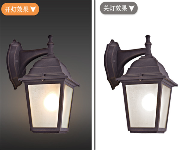 帝之苑戶外壁燈DH-1311戶外照明燈開燈、關燈效果圖