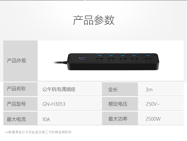 公牛(BULL)抗電涌抗浪涌插座/插線板/插排/排插/接線板