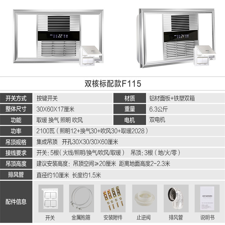 多功能風暖浴霸 嵌入式集成吊頂 取暖換氣照明四合一 F115