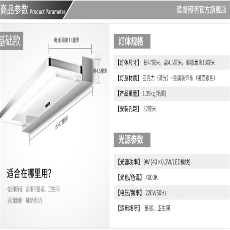 - 型號名稱【基礎款】防水汽防銹專業化妝燈9瓦燈長47cm