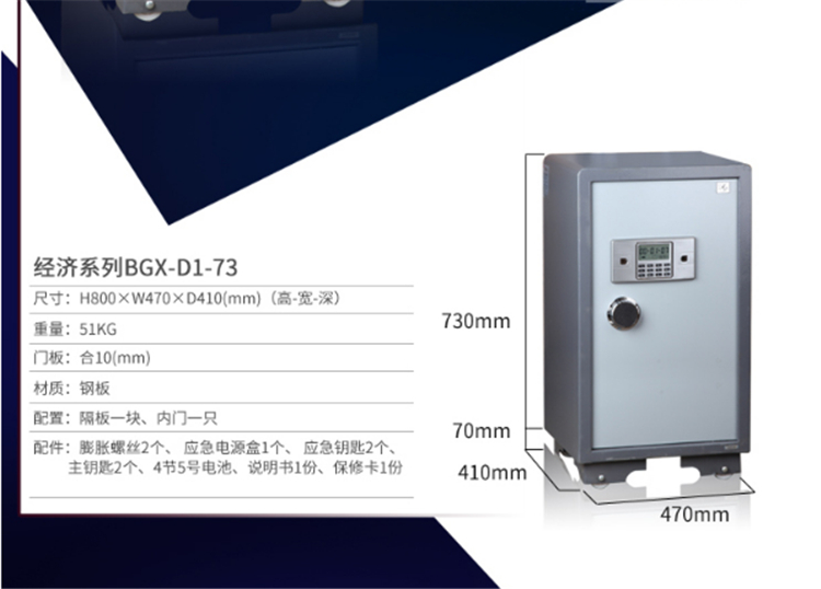 電子經濟系列BGX-M/D-730可快速固定保險箱,防止盜竊者移動保險箱。
