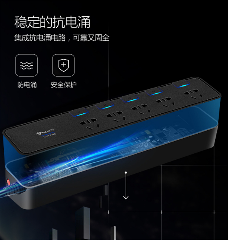 公牛(BULL)抗電涌抗浪涌插座 穩定的抗電涌 集成抗電涌電路,可靠又周全